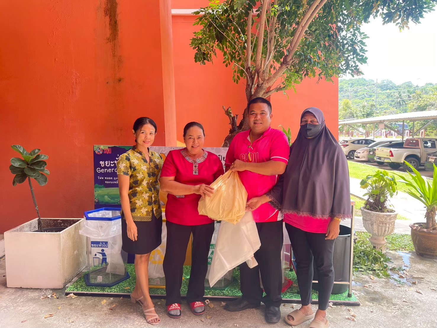 ขยะอันตราย (ถังสีแดง): เน้นย้ำความปลอดภัยในการแยกขยะมีพิษ เช่น ถ่านไฟฉาย, หลอดไฟ, กระป๋องสเปรย์ ซึ่งต้องแยกทิ้งให้ชัดเจนเพื่อความปลอดภัยของพนักงานเก็บขนและสิ่งแวดล้อม