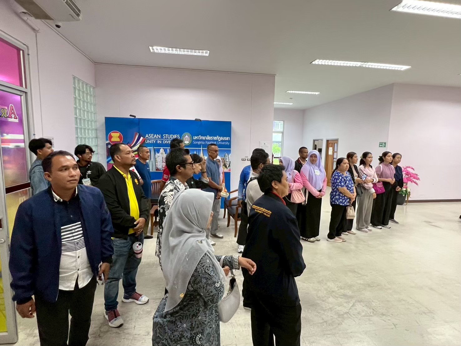 การต้อนรับในครั้งนี้ นำโดย ผศ.พิเชษฐ์ จันทวี อธิการบดี ผศ.ดร.กัณตพล มะหาหมัด รองอธิการบดีฝ่ายบริหารฯ พร้อมด้วยทีมงานและบุคลากรผู้เชี่ยวชาญ ได้ให้การต้อนรับคณะศึกษาดูงานจากวิทยาลัยชุมชนยะลาและคณะทำงานอย่างอบอุ่น บรรยากาศเป็นไปอย่างมิตรภาพและความมุ่งมั่นในการแลกเปลี่ยนองค์ความรู้
